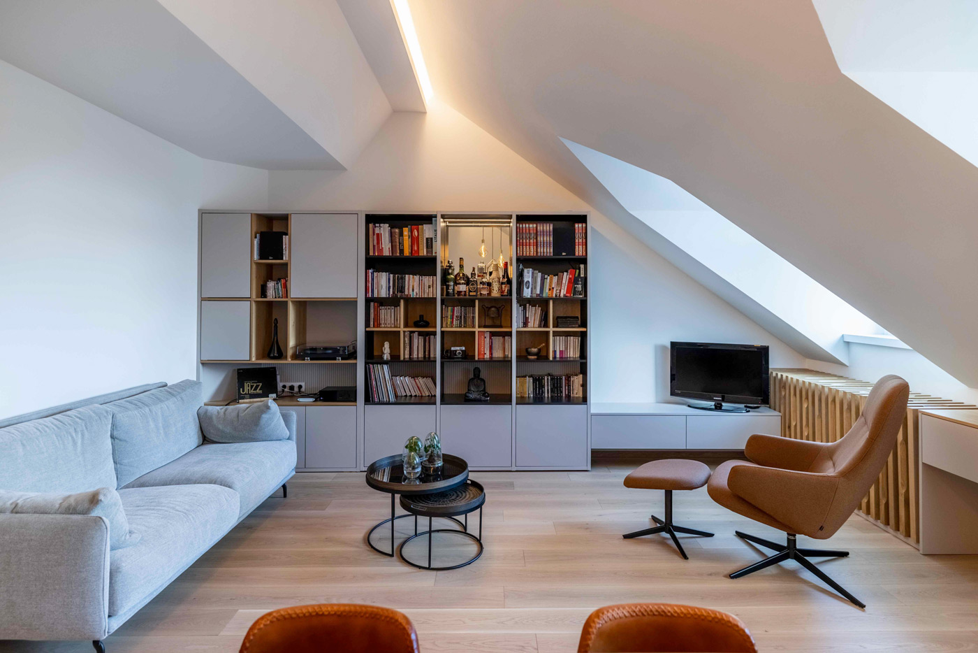 Le parquet à chevrons convient à tous les styles d’intérieur, que celui-ci soit classique, intemporel ou moderne. Ce parquet est composé de planches oblongues posées à plat les unes contre les autres dans un motif à chevrons.