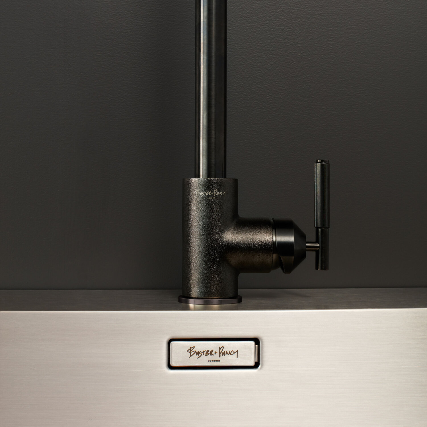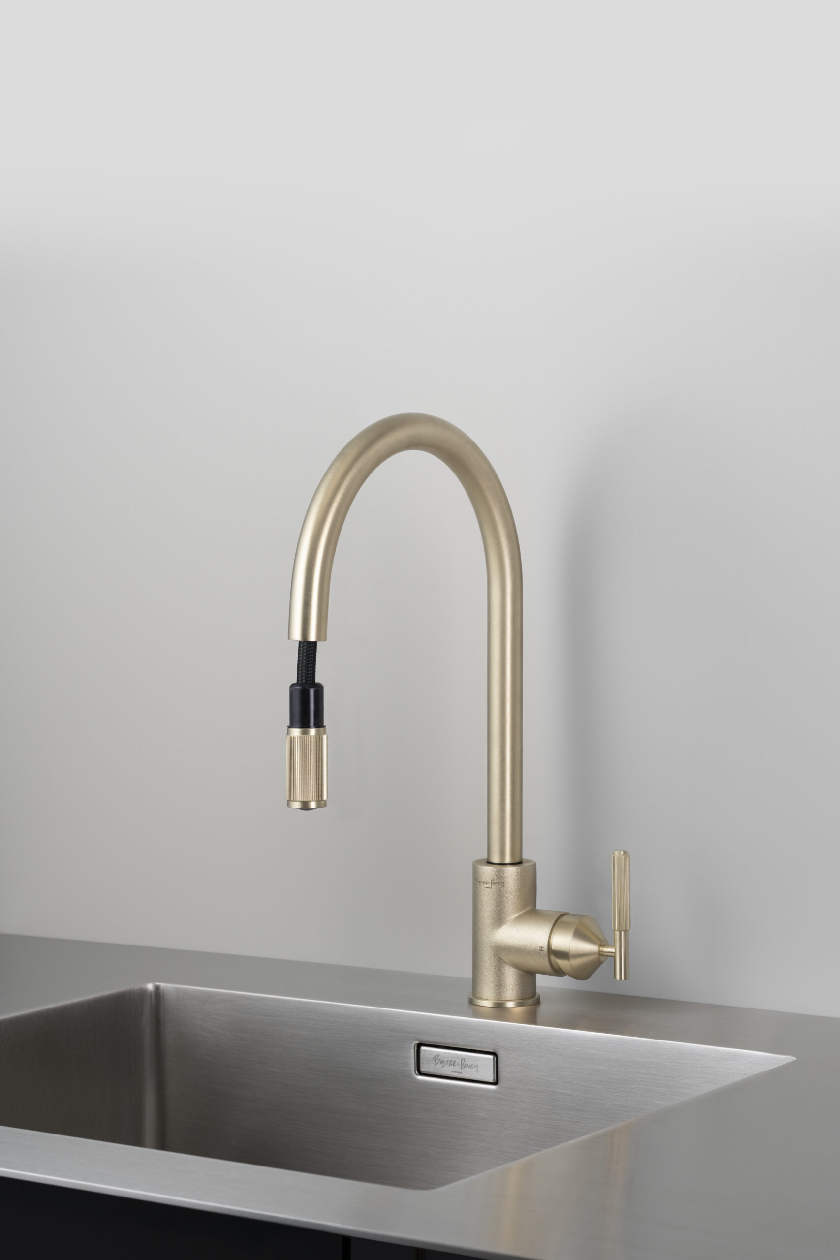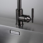 Un robinet de cuisine, avec eau chaude et froide. Construit à partir de métal massif brut et usiné avec précision en Italie, il est doté de notre levier à molette linéaire et de notre buse de pulvérisation à molette linéaire. Le robinet est enfin affiné à la main et fini avec un subtil insigne B+P gravé à l’acide.