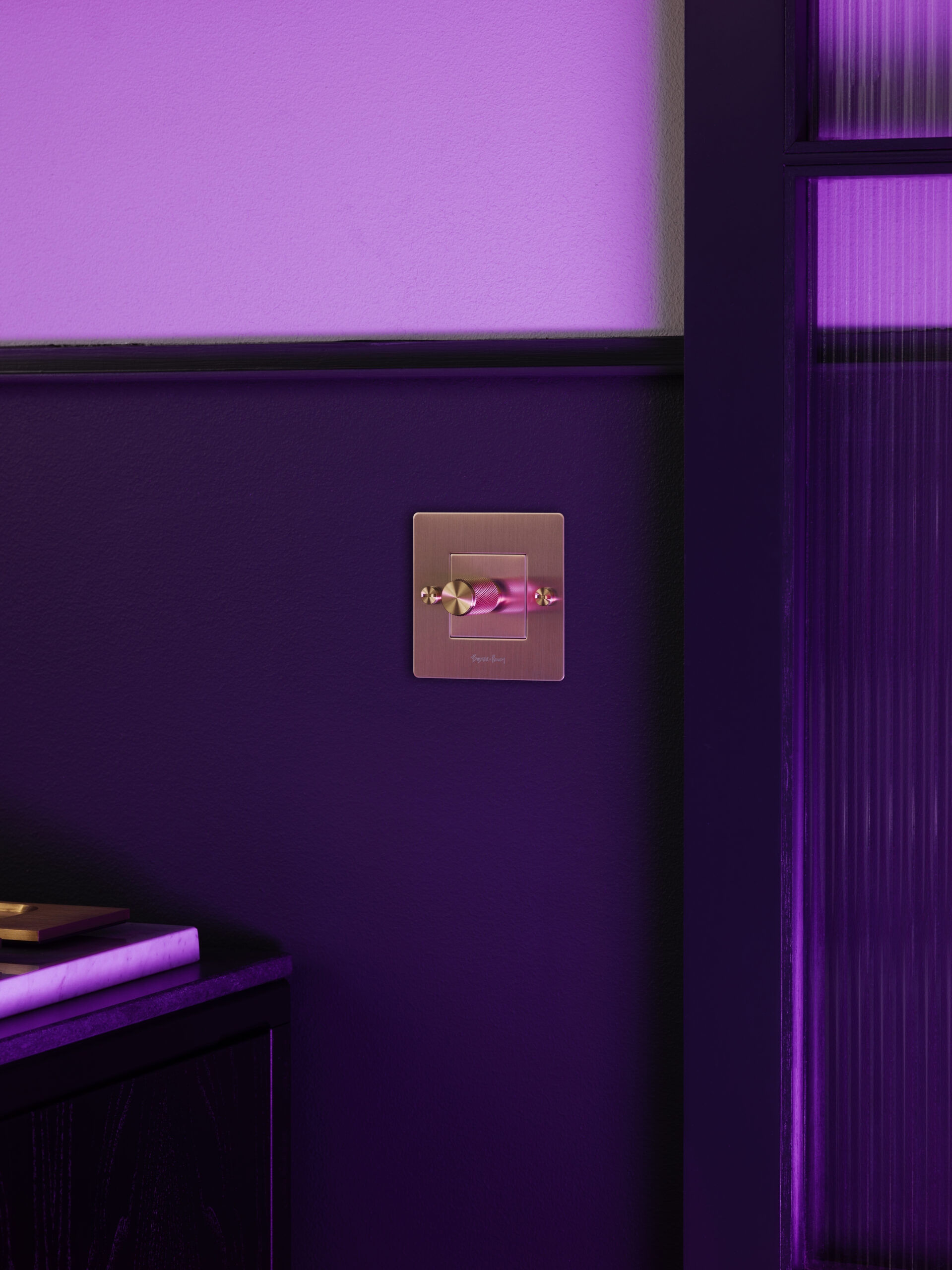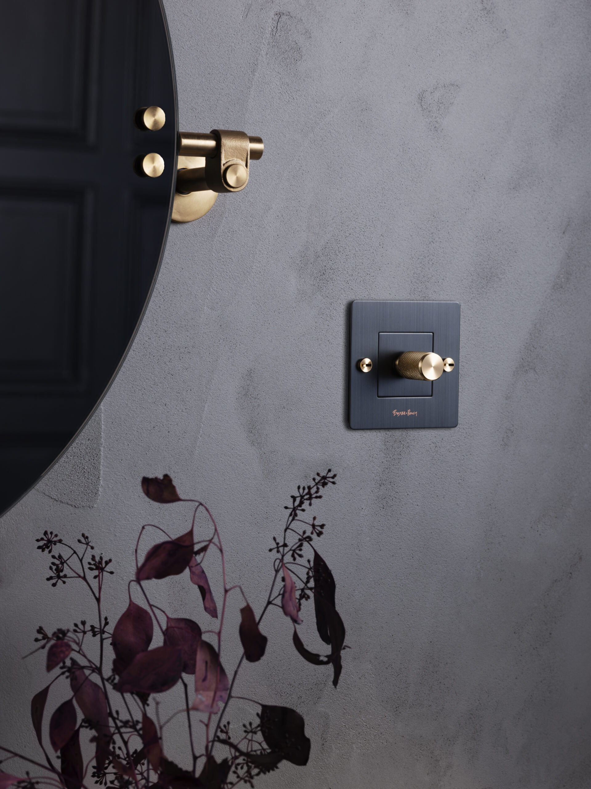 Un gradateur 1G. Le bouton du gradateur présente notre motif de moletage croisé taillé au diamant et est fabriqué à partir de laiton massif.